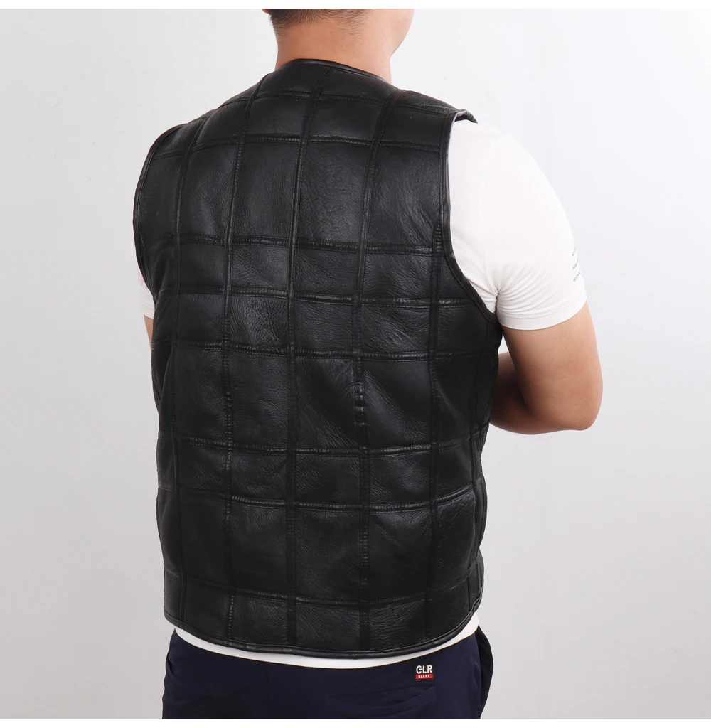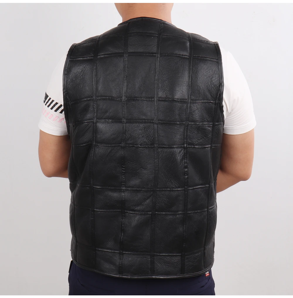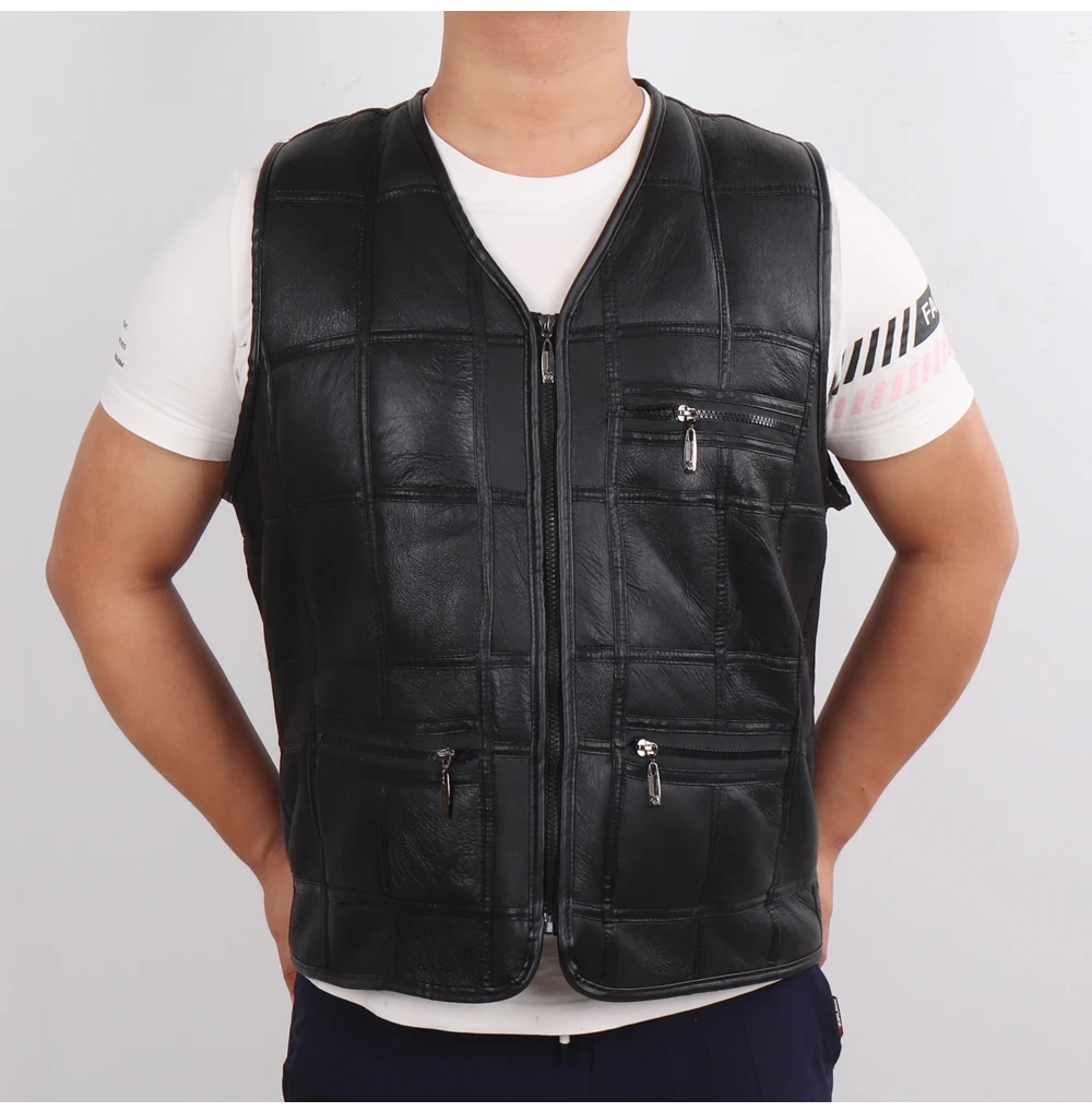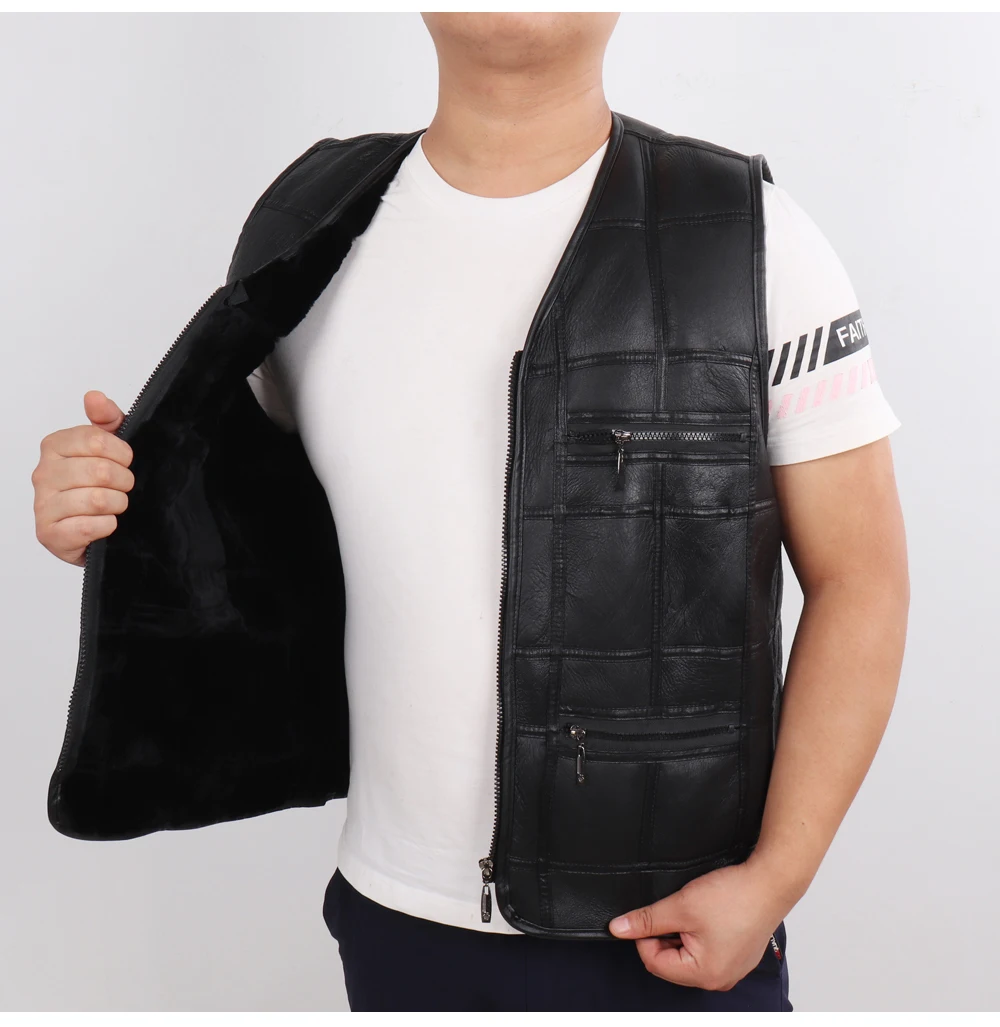 Male Winter Thick Warm Genuine Sheepskin Leather Vests Casual Men Natural Sheepskin Leather Gilets Fashion Real Leather Vest