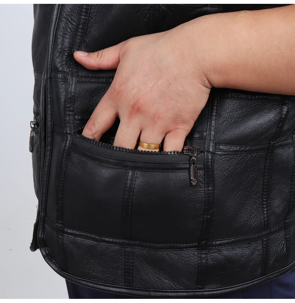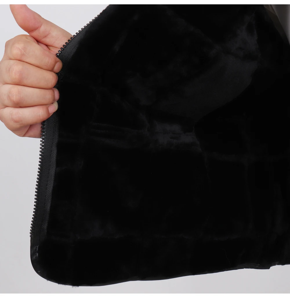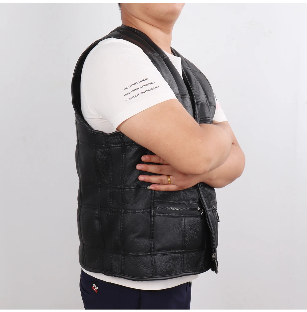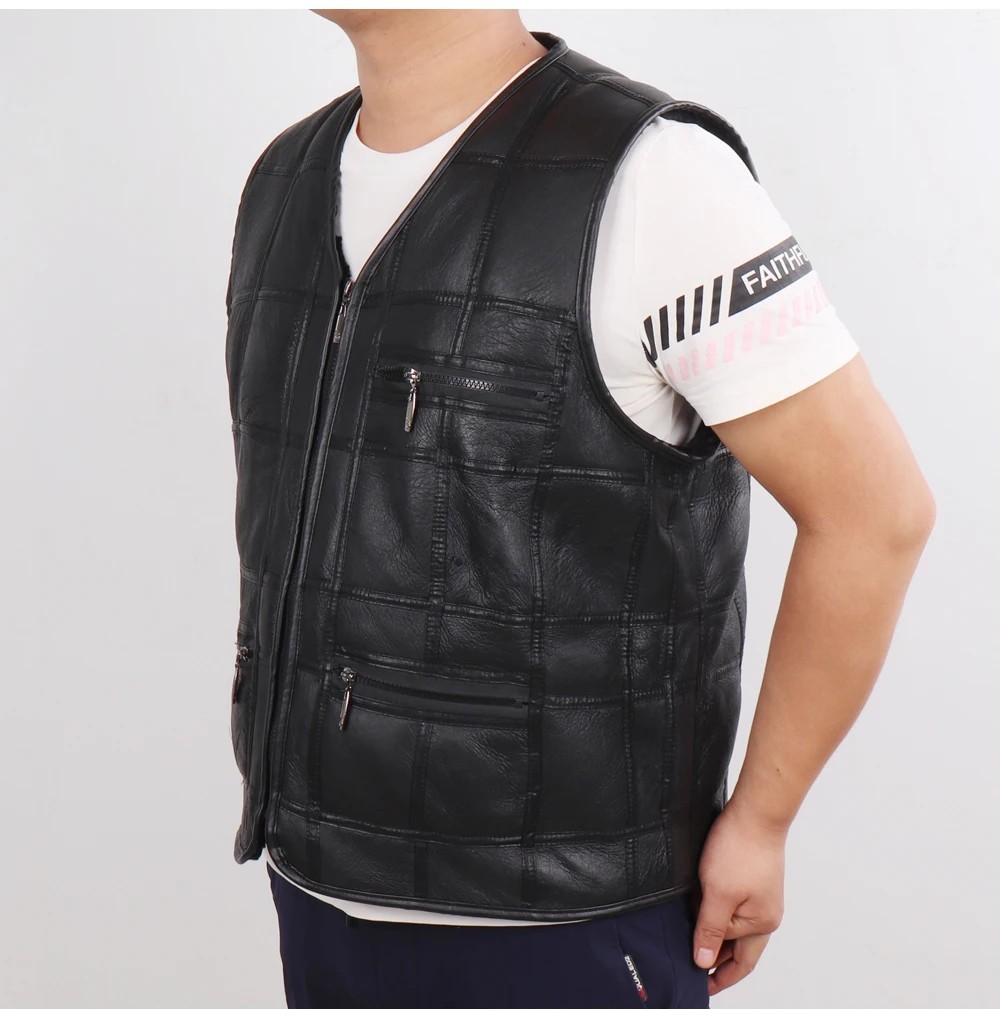 Male Winter Thick Warm Genuine Sheepskin Leather Vests Casual Men Natural Sheepskin Leather Gilets Fashion Real Leather Vest