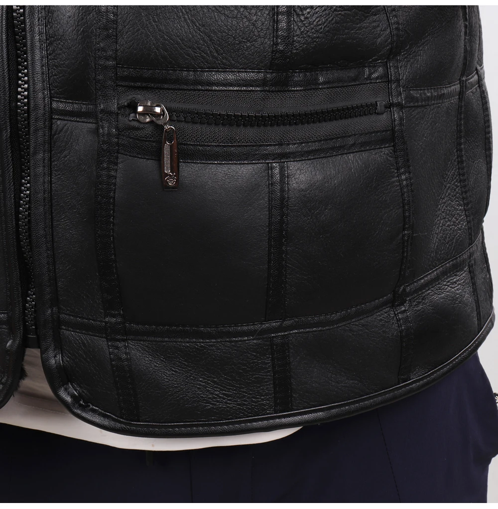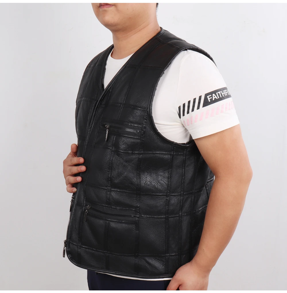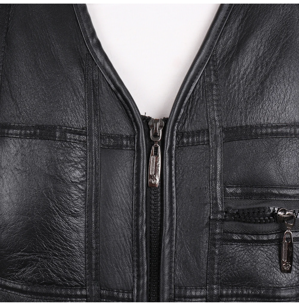Applicable Season:Autumn,Winter Closure Type:Zipper Collar:V-Neck Style:Casual Type:Wide-waisted Thickness:Thick Sleeve Length:Sleeveless Material:Sheepskin,Wool,Leather Color:Black Size:S-XL Outerwear Type:Leather Gender:Men..