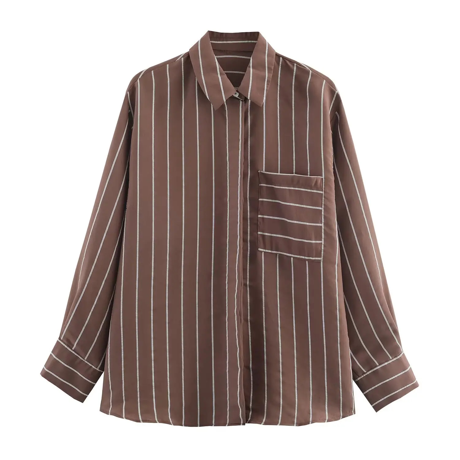 Highly Concerned Chemicals: None Occasion: Casual Closure: Single-Breasted Pattern: Striped Material: Polyester Collar Type: Turn-Down Collar Color:Coffee Size:S-L..