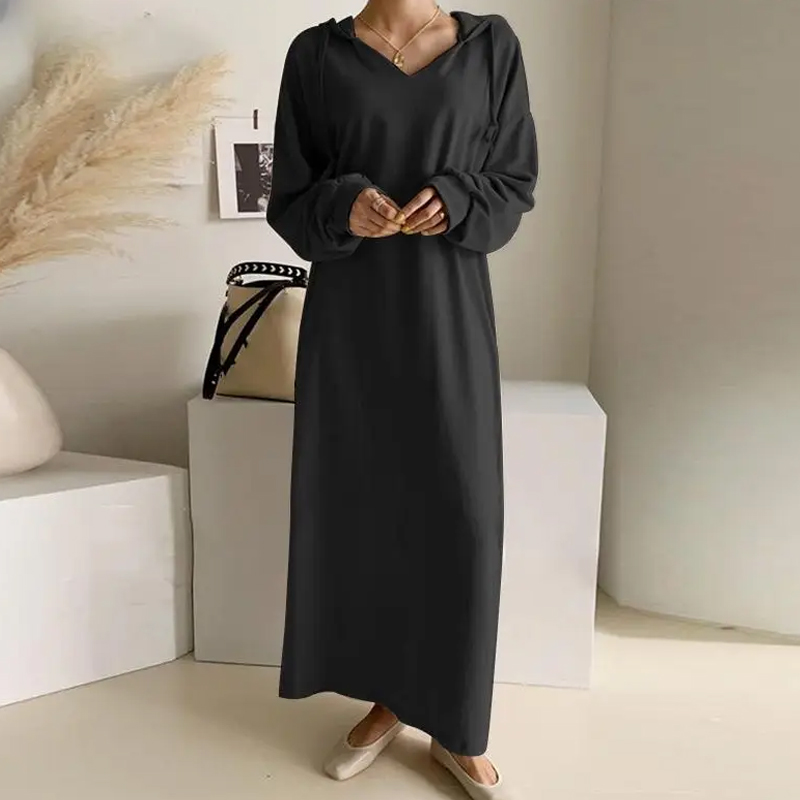 Women's Dress Fashion Simple Retro Hooded Dress Sweatshirt Winter Long Sleeve Solid Hooded