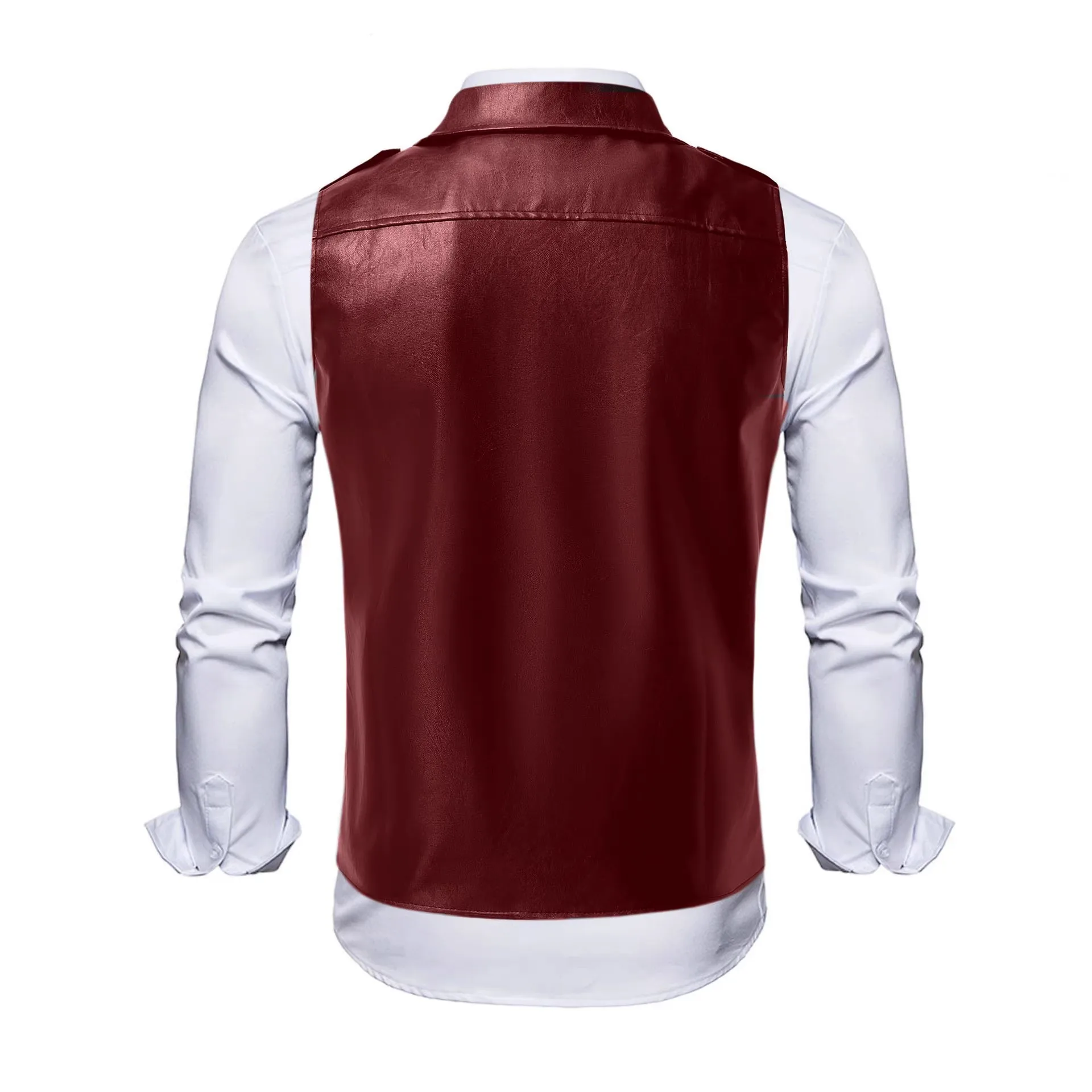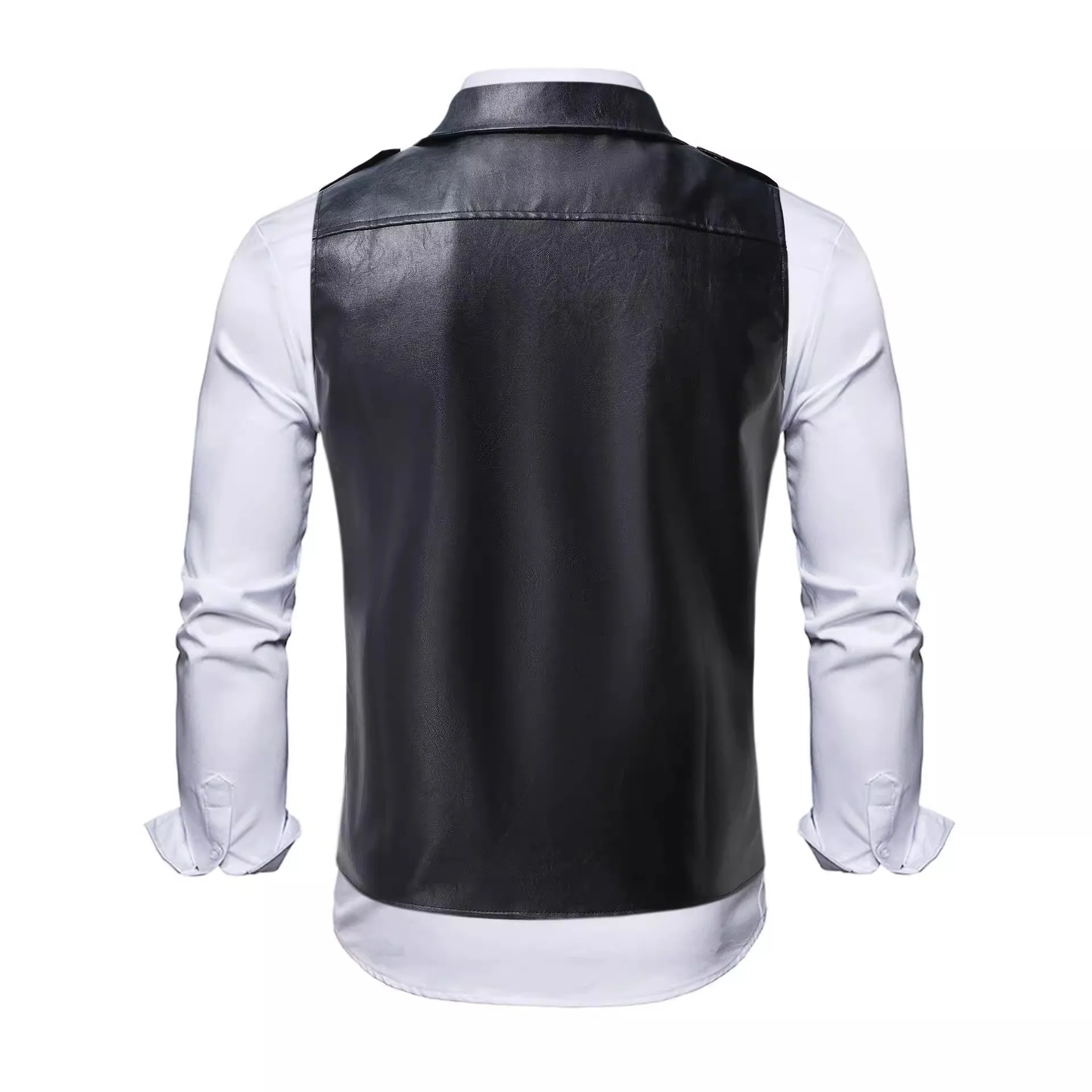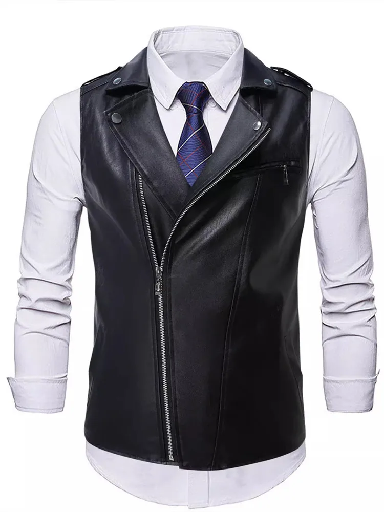 Men's PU Leather Vests Fashion ZIpper Waistcoat Solid Turn Down Collar Moto Biker Sleeveless Jackets Male Casual Leather Vest